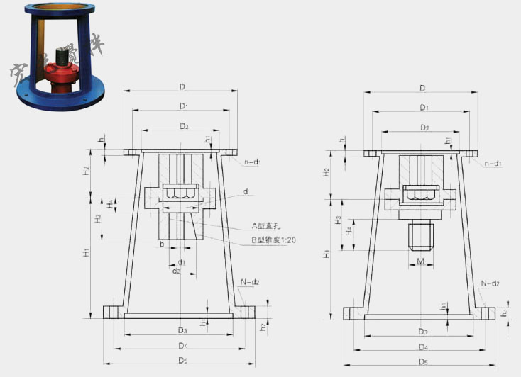 本機架適用于擺線針輪減速機的聯接,配剛性聯軸器,上聯軸器裝JA型直孔,下聯軸器裝A型直孔或B型錐孔,錐度為1:20的聯軸器。該機架無支承適用于反應器傳來的軸向力不大時使用。