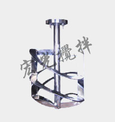 GLD攪拌器應用于高粘度(超過100,000cp)的流體攪拌中,有好的傳熱和表面效果。其結構形式有單螺帶和雙螺帶二種。不同數量的翼片,不同螺距以及不同形式的螺帶可以根據不同的攪拌要求而特殊制作。